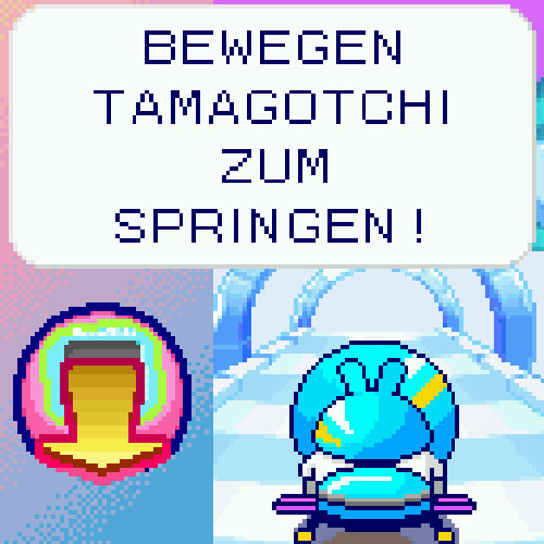 3. Wenn ein Protokoll oder ein Stern erscheint, Schwingen Sie Ihr Tamagotchi Uni -Gerät zu sich, um darüber zu springen!