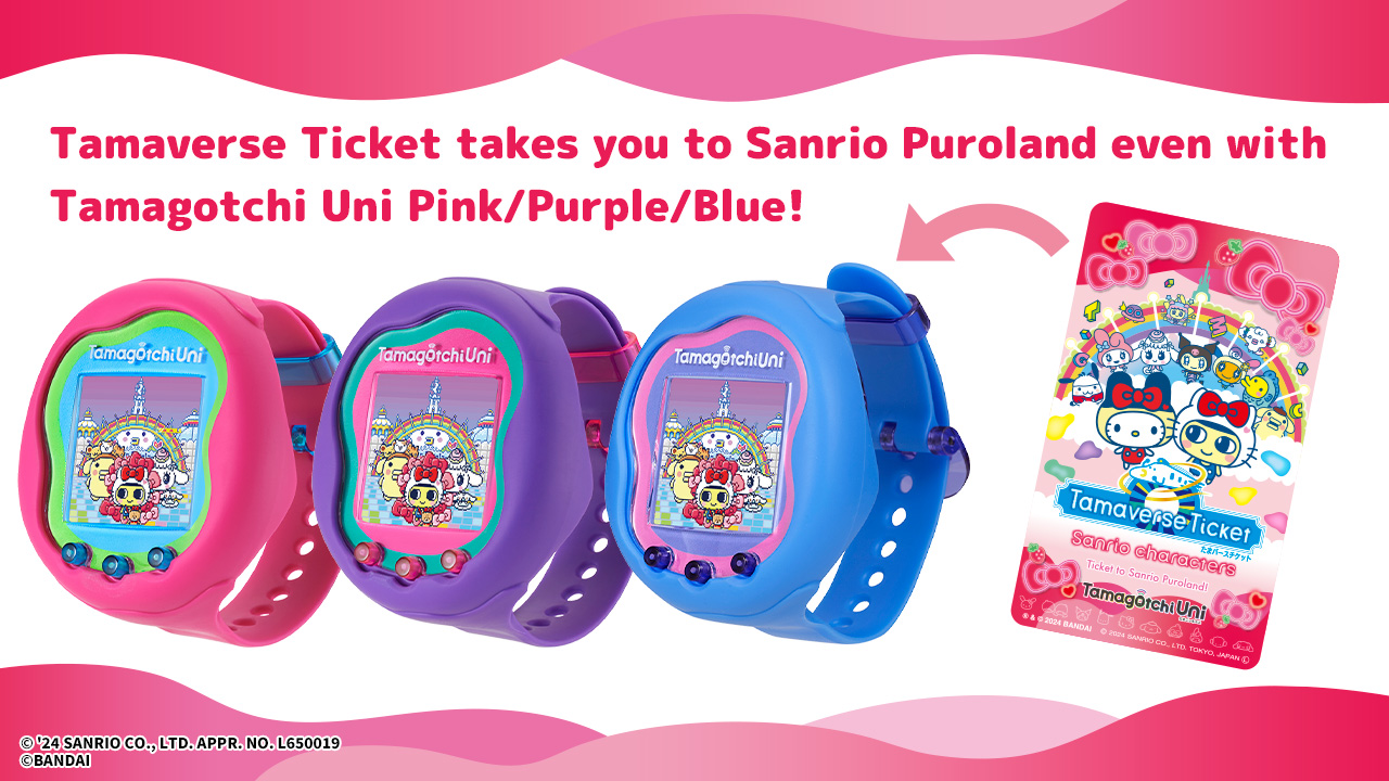 Para las personas que tienen Tamagotchi Uni Rosa, morado y/o azul, pueden comprar los "personajes Tamaverso Ticket Sanrio " para descargar contenidos a su dispositivo Tamagotchi Uni .