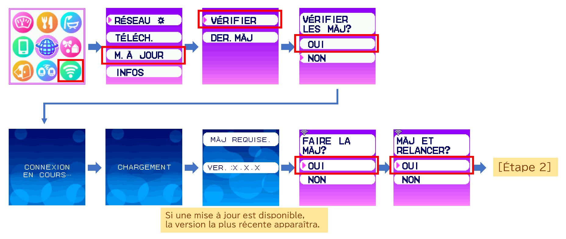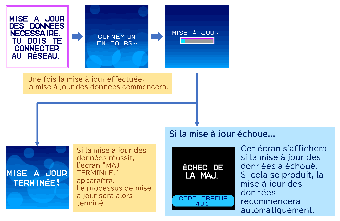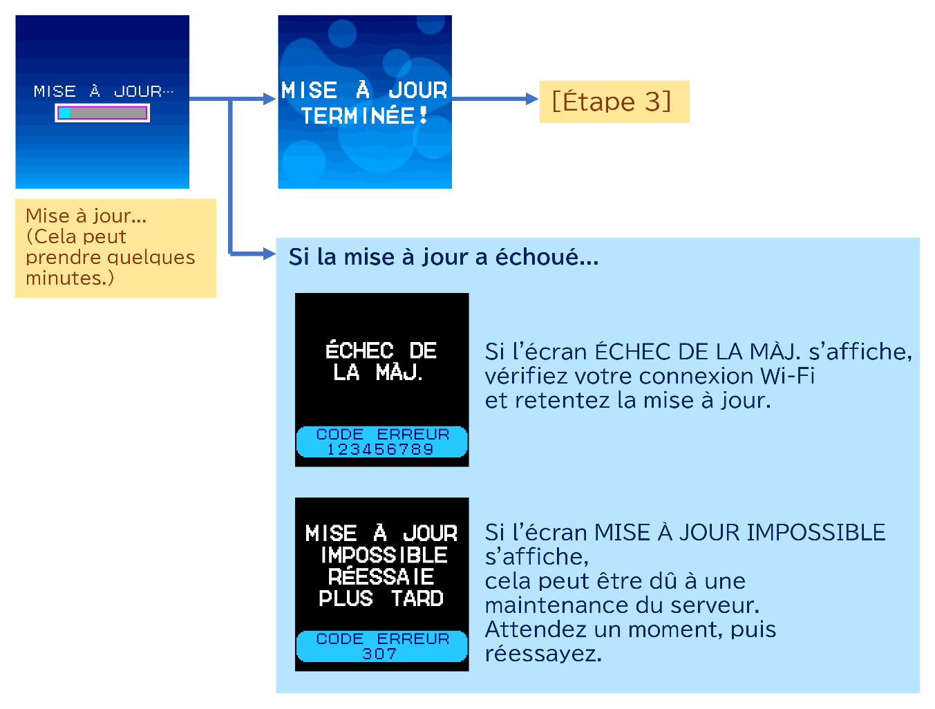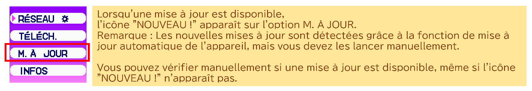 - Une fois la mise à jour commencée, vous ne pourrez plus jouer avec l'appareil