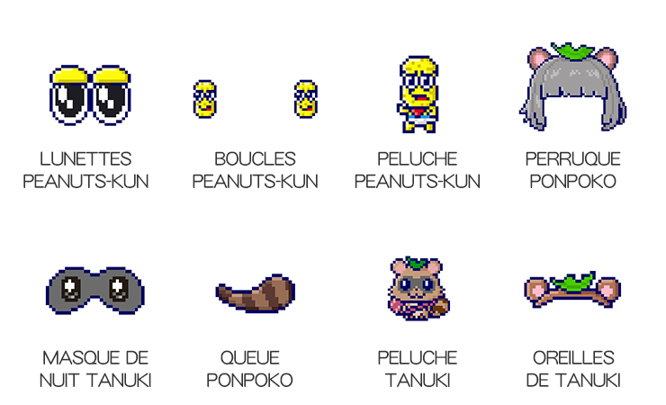 Il existe de nombreux objets uniques que vous ne pouvez obtenir qu'à PokoPea Land ! Trouvez les articles que vous aimez dans la BOUTIQUE POKOPEA !