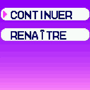 *Lorsque ce problème survient dans la version 2.0.0, l'écran permettant de sélectionner "CONTINUER" ou "RENAÎTRE" s'affiche, mais il convient de sélectionner "CONTINUER".
