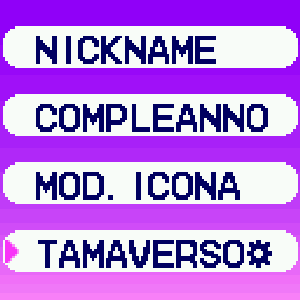 Utilizza il PULSANTE A per spostare il cursore e il PULSANTE B per controllare il profilo del personaggio Tamagotchi selezionato.