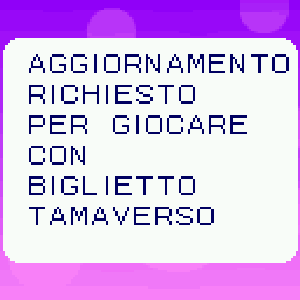 Per giocare con i personaggi Biglietto Tamaverso Sanrio characters, devi aggiornare il tuo dispositivo Tamagotchi Uni alla versione 2.0.0 o successiva. Dopo la schermata seguente, aggiorna il tuo dispositivo. Clic Qui per sapere come aggiornare.