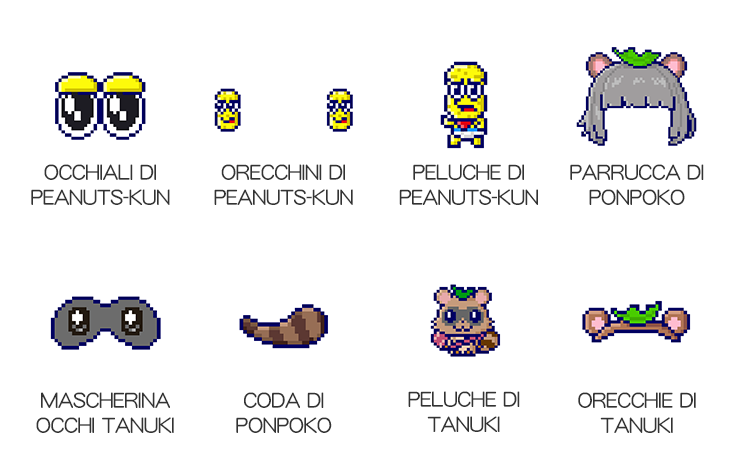 Ci sono molti oggetti unici che puoi ottenere solo a PokoPea Land! Trova gli oggetti che ti piacciono al NEGOZIO POKOPEA!