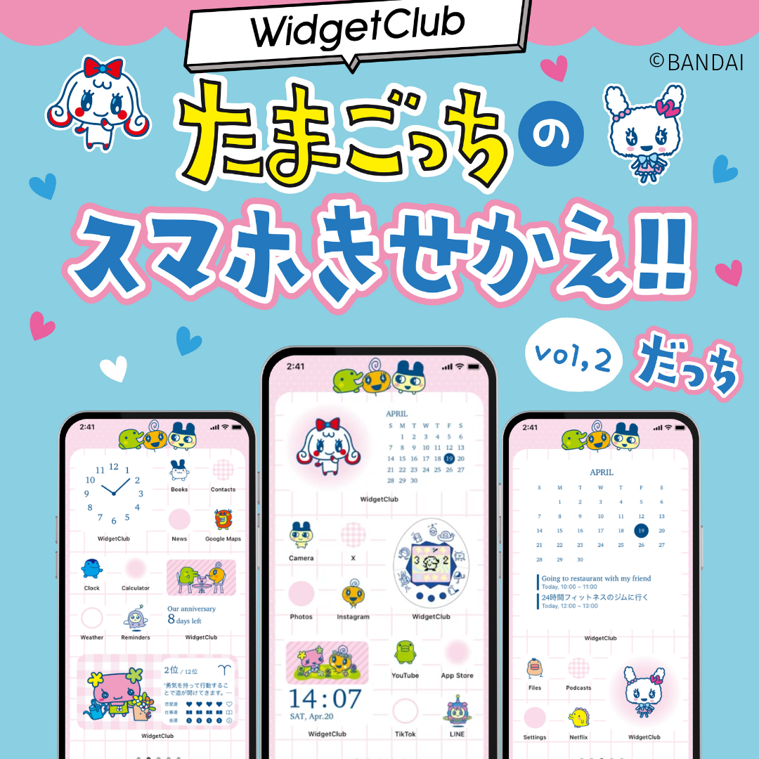 スマホの中身をまるっとたまごっち仕様にきせかえられるデジタルグッズ(ウィジェット・壁紙・アイコンがセット)が「WidgetClub(ウィジェットクラブ)」にて大好評発売中!