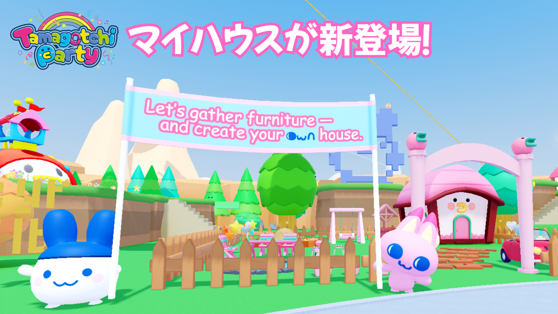 ついに『Tamagotchi Party』に自分だけのお部屋やお庭を自由にアレンジできる「マイハウス」機能が登場!