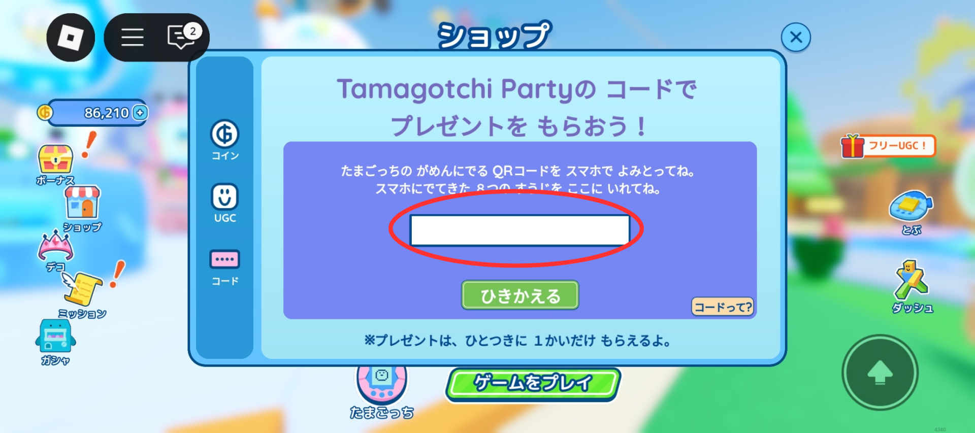 ※シリアルコードはRoblox「Tamagotchi Party」内でのみ使用可能です。