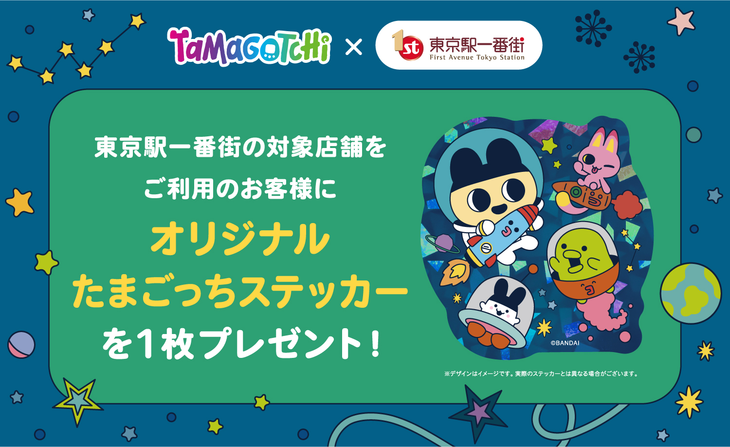 東京駅一番街の対象店舗をご利用の方に、本イベントでしか手に入らない「オリジナルたまごっちステッカー」をプレゼントします。