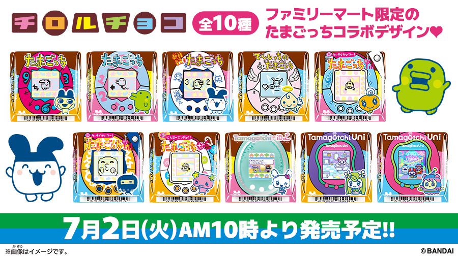 7月2日(火) 10時には、「チロルチョコ〈たまごっち エッグタルト〉」が「Original Tamagotchi」の発売に先駆けて全国のファミリーマート(一部店舗)で登場します!