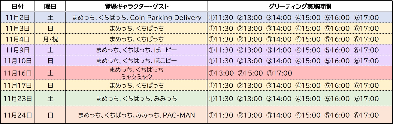 展示エリアでは、まめっちやくちぱっち、またCOIN PARKING DELIVERYの白井さんやミャクミャクといった、たまごっちとコラボレーションしているキャラクターのグリーティングを実施予定!