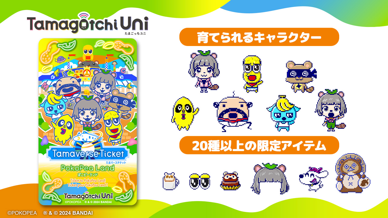 2024年12月5日(木)に、Tamagotchi Uniで遊べる「Tamaverse Ticket ぽこピーランド」が発売されるよ!