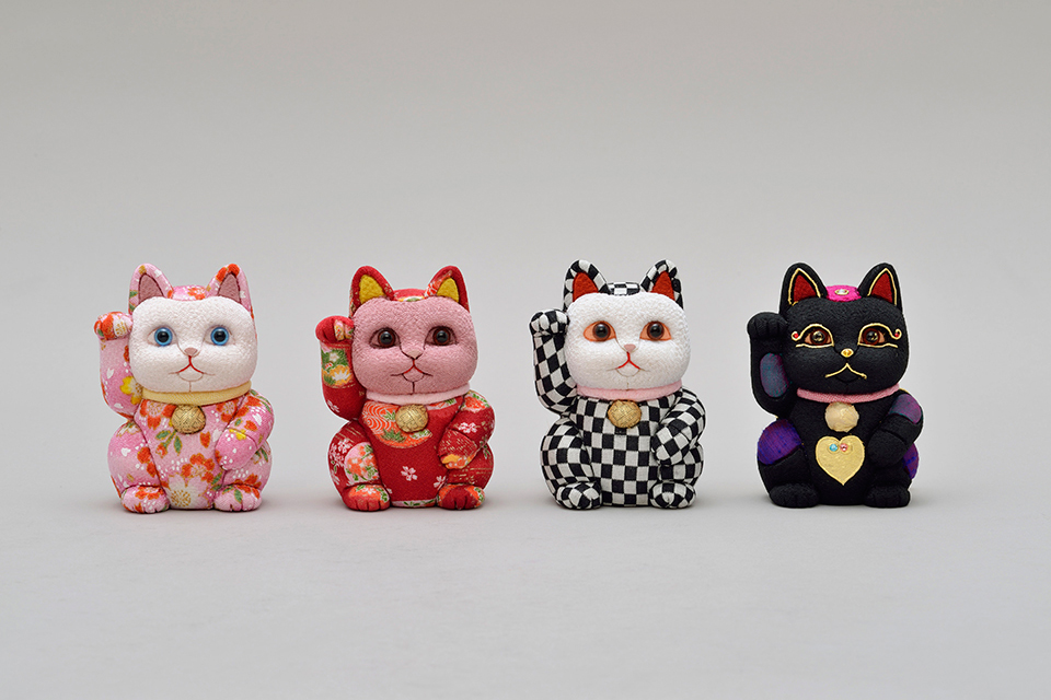 1950(昭和25)年に創業した、江戸木目込人形の節句人形を手がける工房。二代目・柿沼東光は、独創的な人形づくりで数々の受賞歴を持つ伝統工芸士です。螺鈿の象嵌、彩色二衣重 (さいしきふたえかさね) などの独自技法の追求、時代を見つめた斬新な人形づくりにも意欲的に取り組んで来ました。「節句に限らず江戸木目込人形を手にする機会を増やしたい」との思いから誕生した「招き猫」シリーズは、世界的な猫ブームに乗って注目され、木目込む布地の取り合わせや革など新素材を採用することにより、まったく新しい江戸木目込人形の世界を創り出しています。