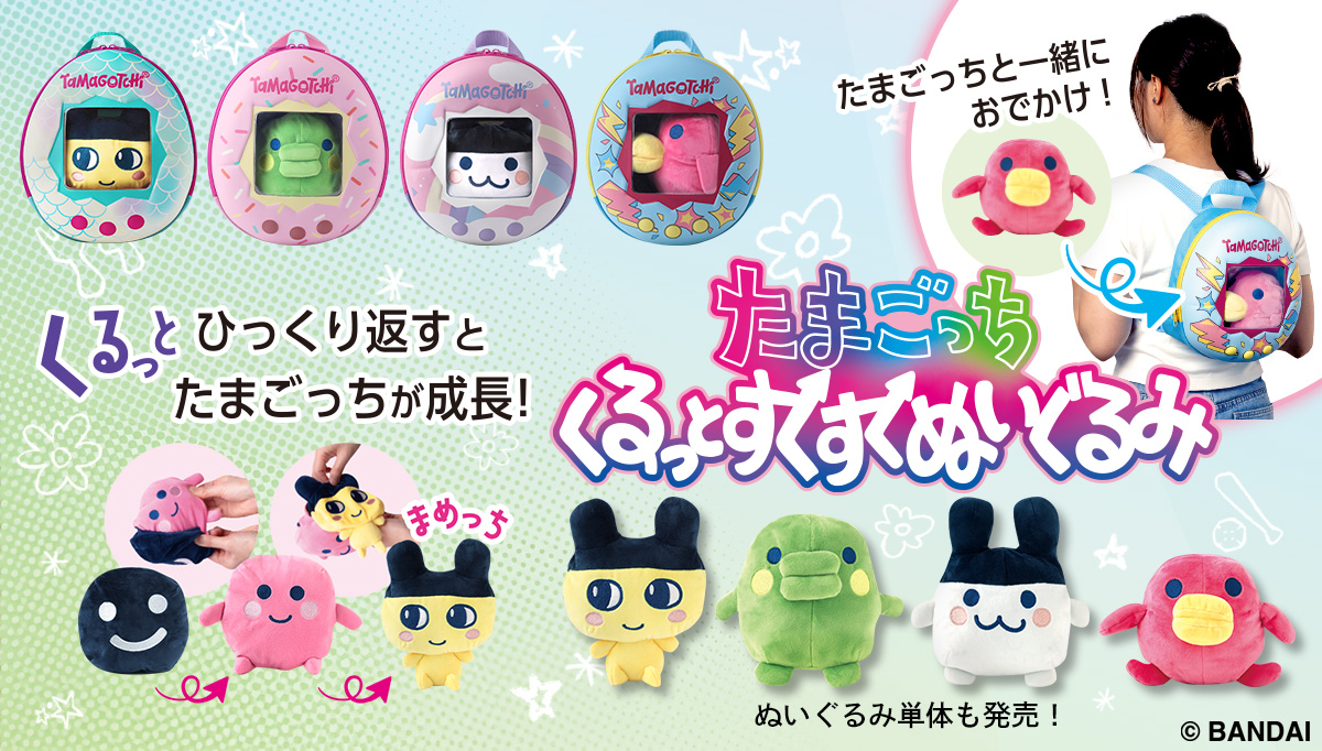 たまごっち本体モチーフのリュックと、くるっとひっくり返すとたまごっちが成長していく3変形のぬいぐるみが新登場!