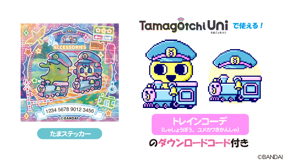 『Tamagotchi Uni』で使用することができるアクセサリー「ユメカワきかんしゃ/しゃしょうぼう」のたまステッカーをプレゼント!