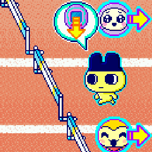 全世界のたまごっちが「チーム・5」と「チーム・1」に分かれて「51たまmハードル」でポイント数を競い合うよ!