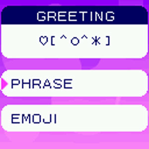 Voor GREETING (GROET) kun je kiezen uit 4 standaardzinnen, of emoji combineren om er zelf één te maken.
