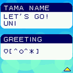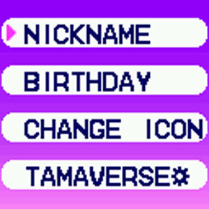 Gebruik de A-KNOP om de cursor te verplaatsen, en de B-KNOP om het profiel te bekijken van het Tamagotchi -personage dat je hebt geselecteerd.