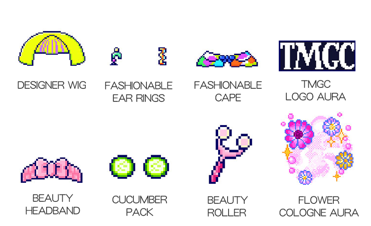 Mode- en cosmetica-thema-items en Tamagotchi personages wachten op je!