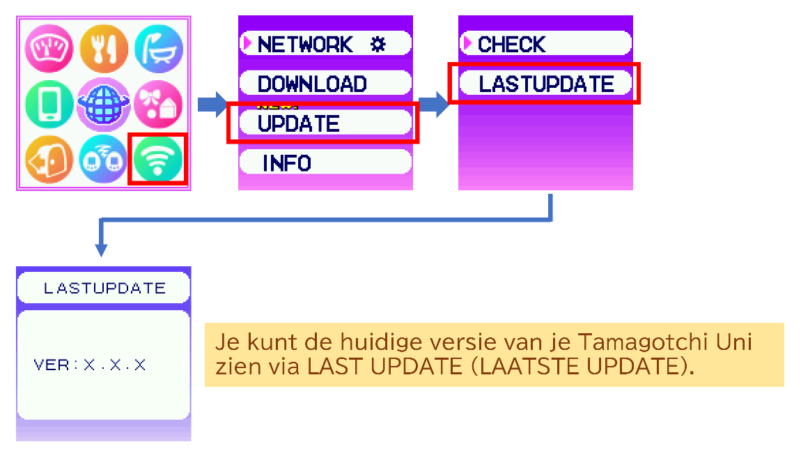 Hoe u de versie van uw Tamagotchi Uni kunt controleren