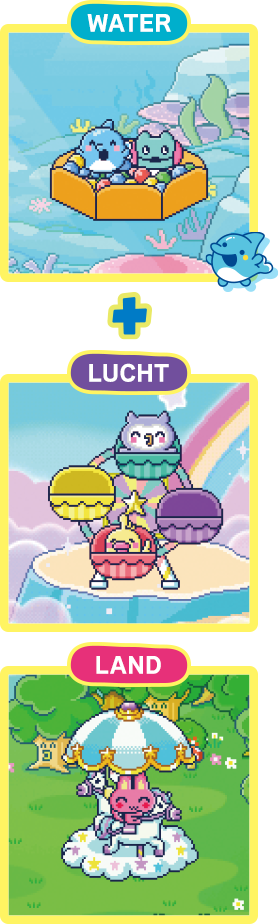 Breng Tamagotchi groot in drie verschillende velden afhankelijk van de mate van ontwikkeling van je nieuwe Tamagotchi-planeet.