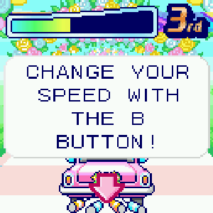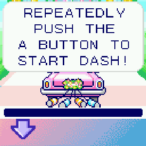 1. Tijdens het aftellen van 3, 2, 1 tik je herhaaldelijk op de A-knop om een boost te krijgen bij de start!