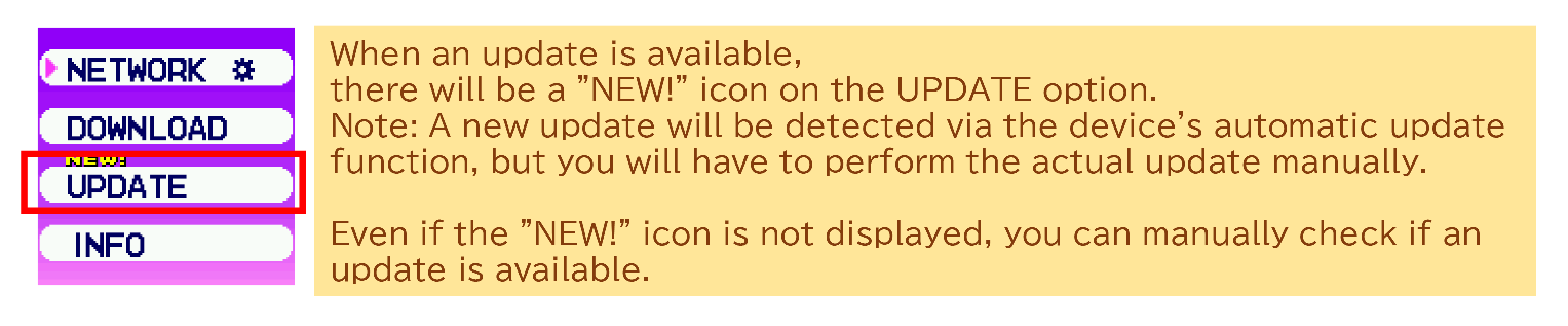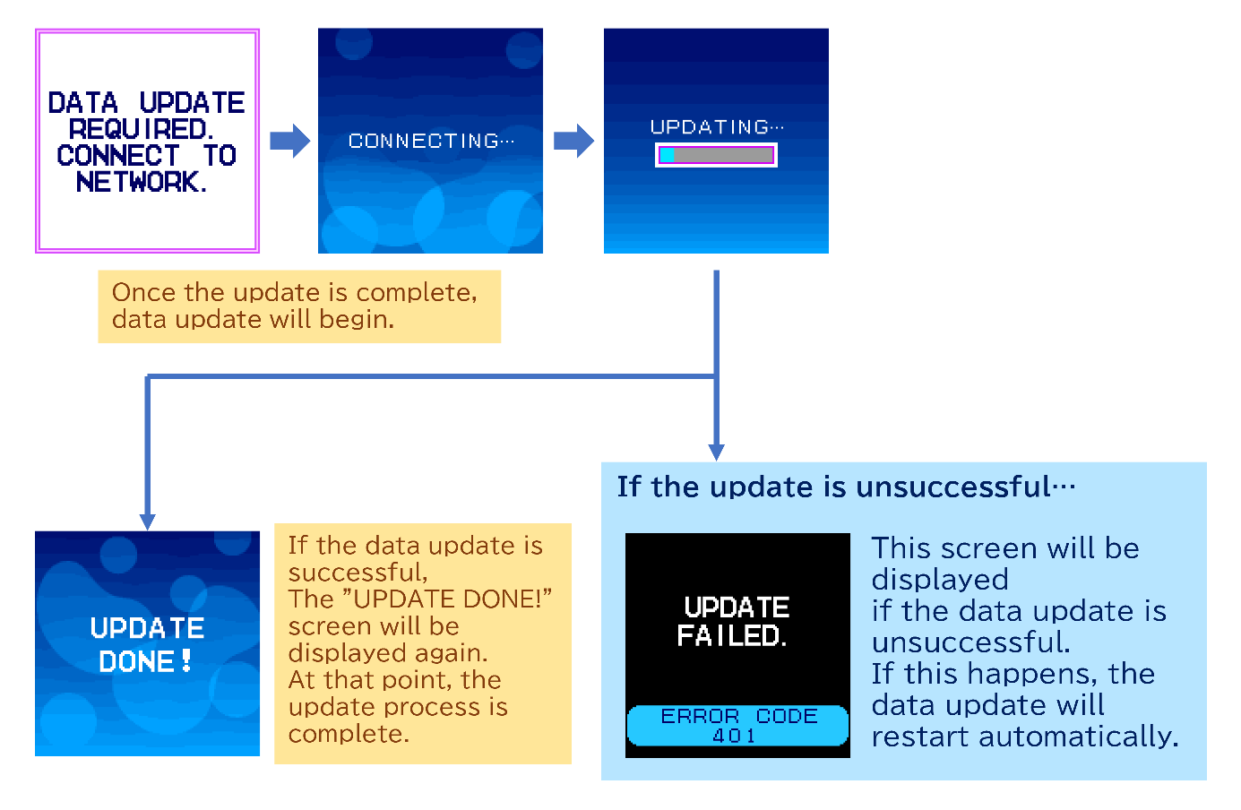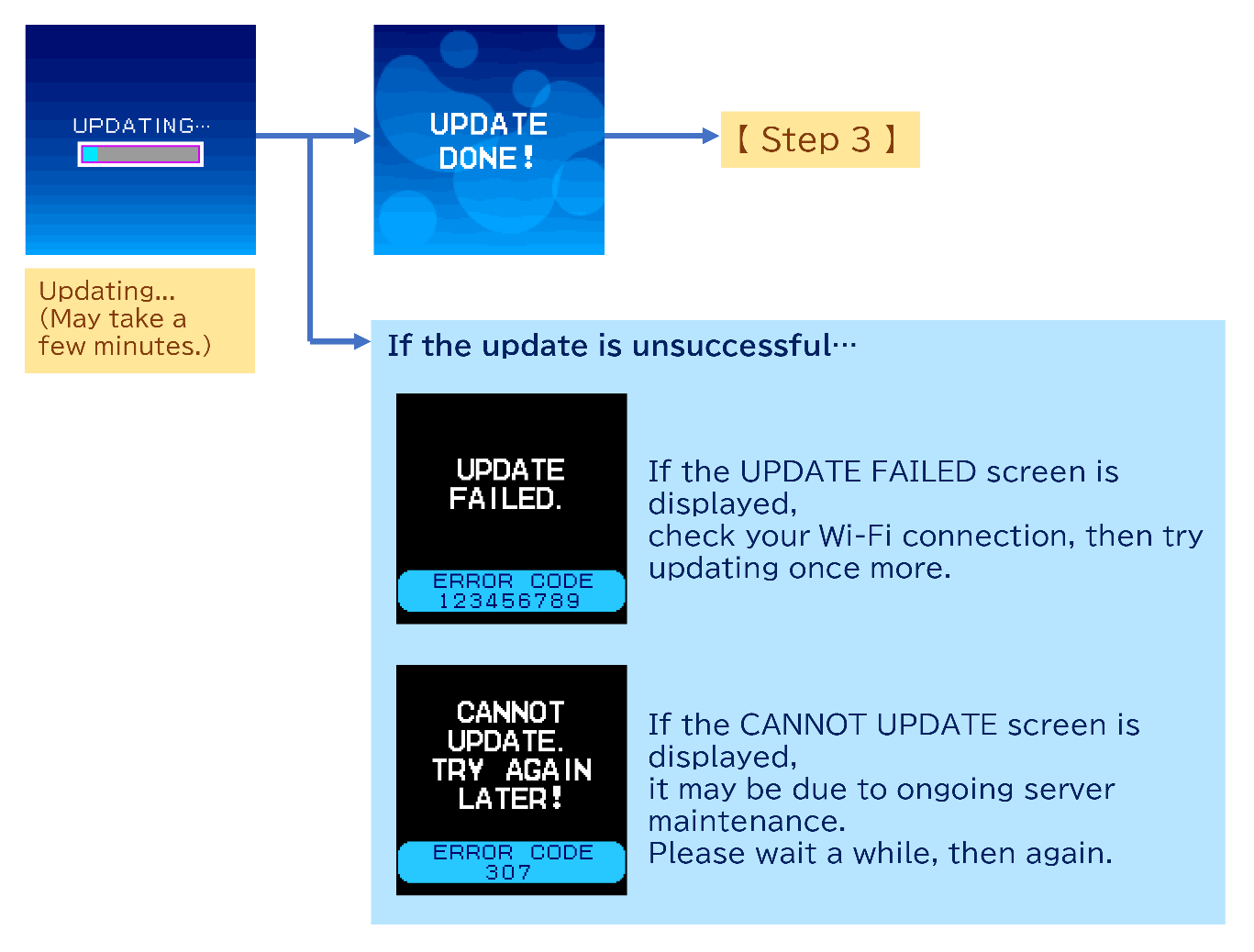 Turning off the power during the update may result in the update not being performed properly or the play data being erased.
