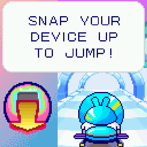 3. When a log or star appears, swing your Tamagotchi Uni device towards you to jump over it!